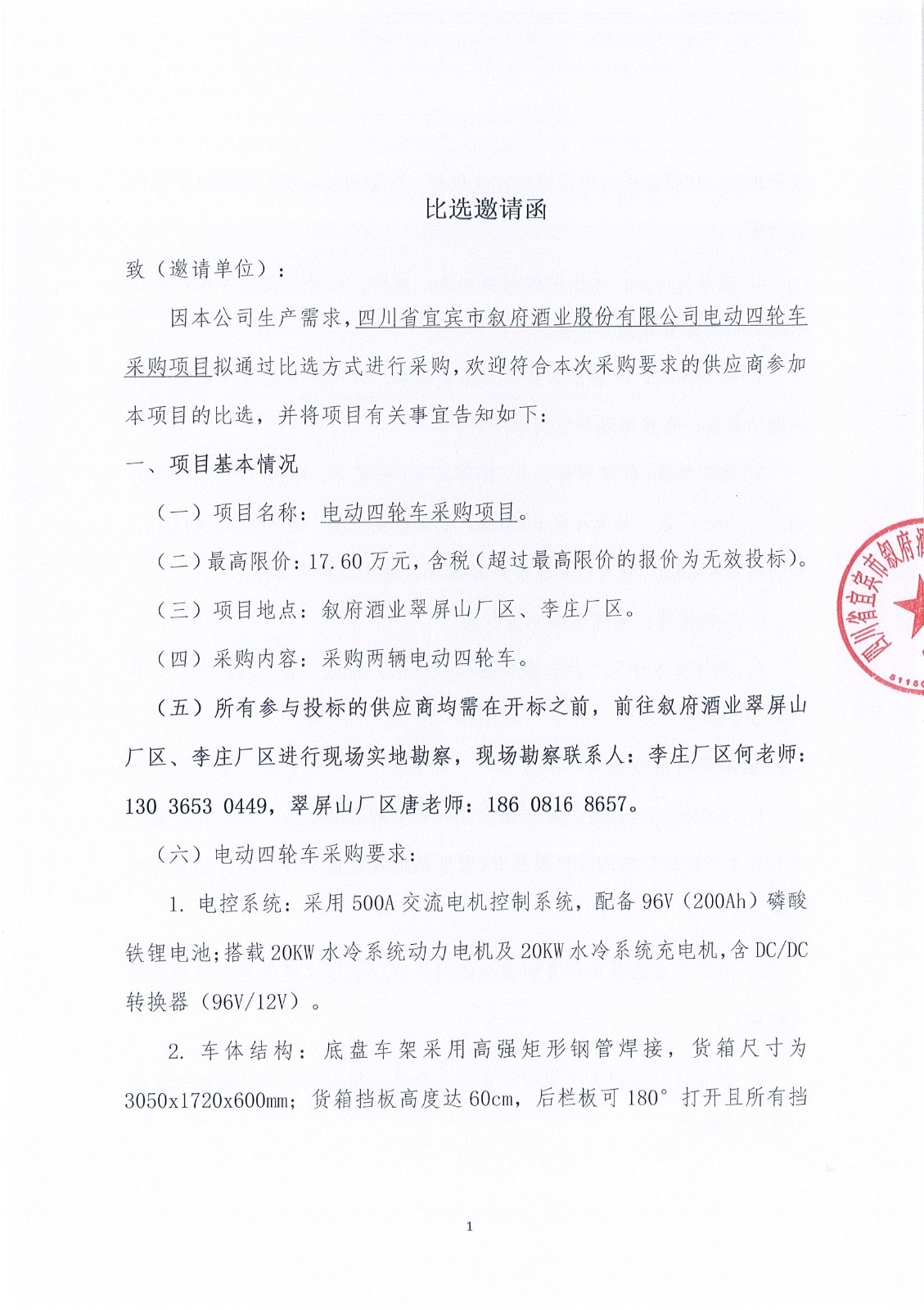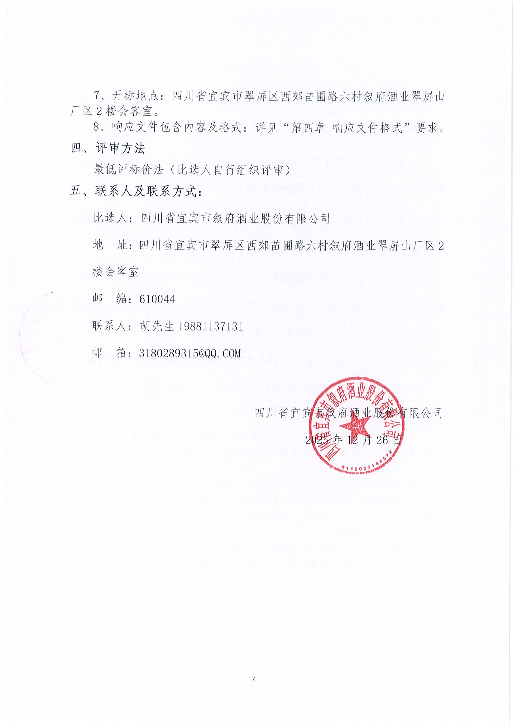 四川省宜宾市叙府酒业股份有限公司田字网格塑料托盘采购项目比选招标公告
